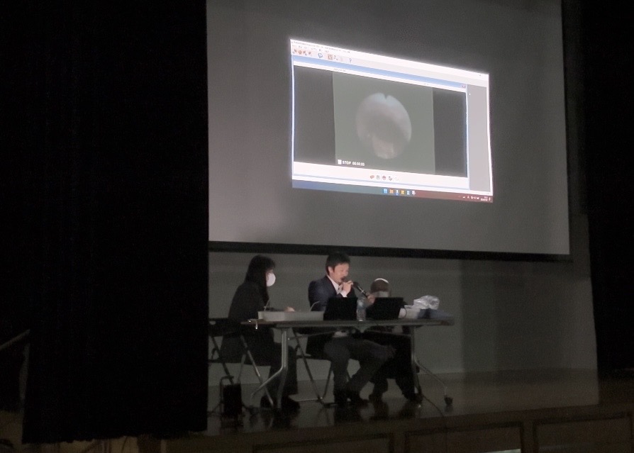 研修の中でも特に盛り上がったのが、尾崎先生ご自身が実演された嚥下内視鏡の場面です。