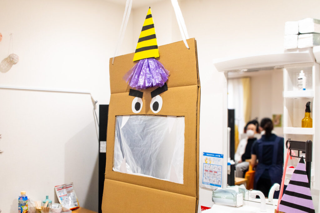 舎の煌では、ボードを使ったゲームで節分を楽しみました。今回のボードは節分仕様の鬼のデザイン。その口めがけてボールを投げ込む、鬼退治ゲームです!