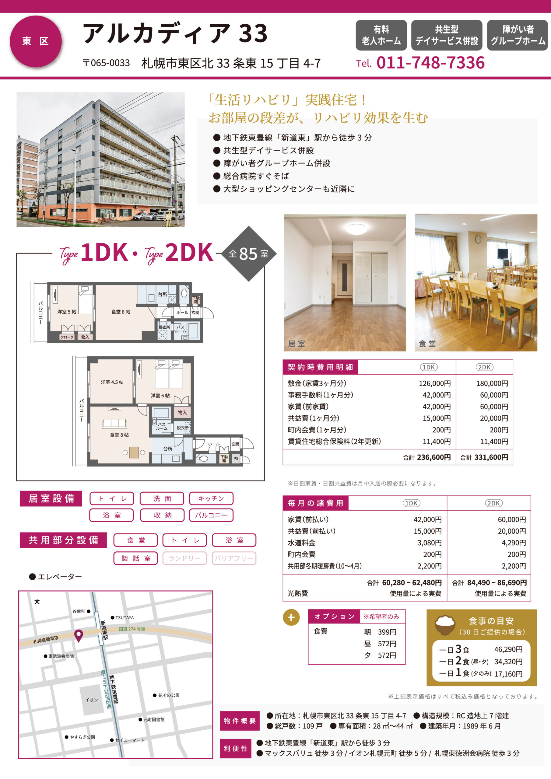 TEL.011-748-7336 地下鉄東豊線「新道東」駅 徒歩3分